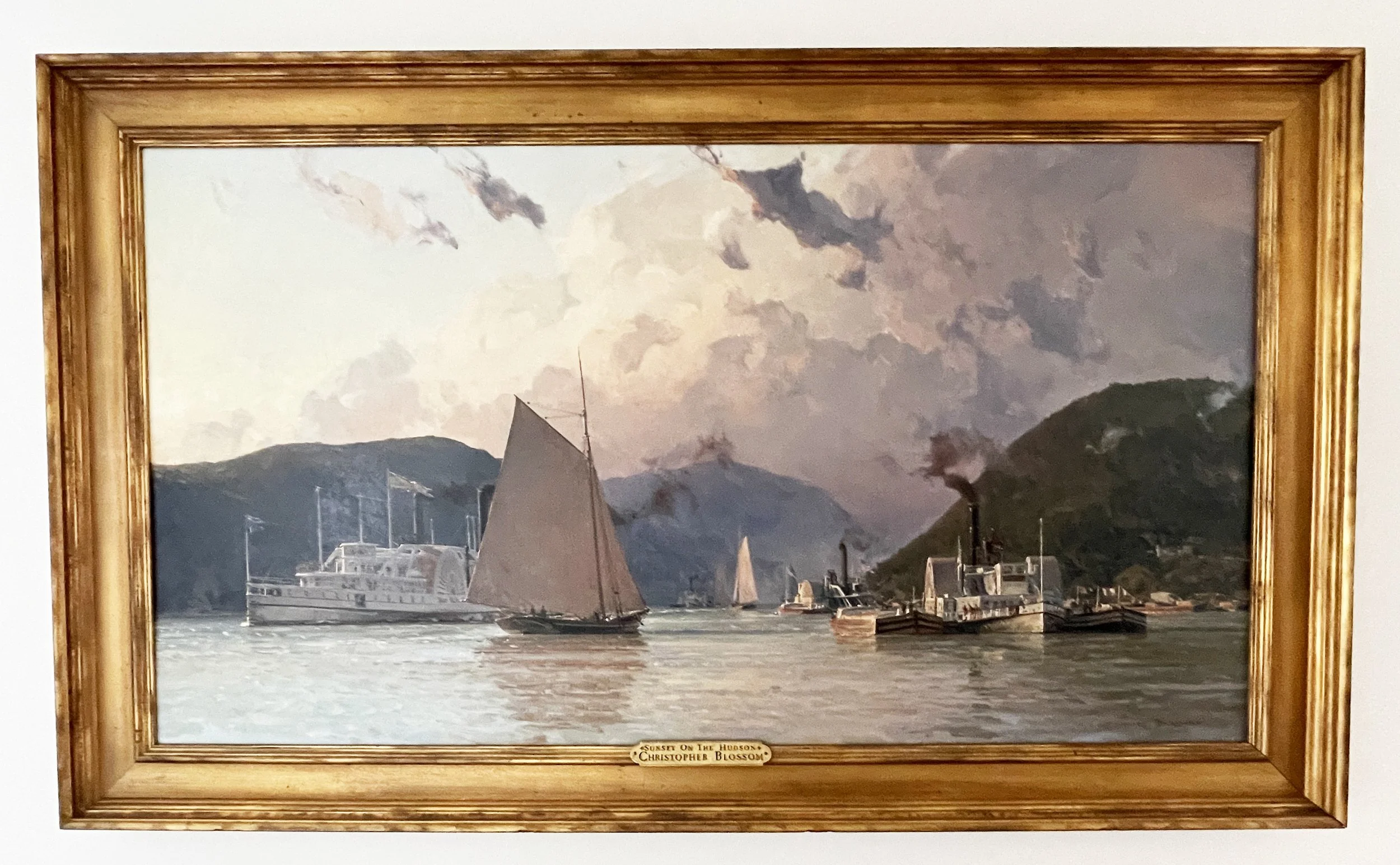 The majestic Hudson River landscape has inspired artists like Thomas Moran (1837-1926) and Frederick Church (1826-1900), to create some of the greatest masterpieces in American Marine Art. Today the river continues to inspire artists like past President of the American Society of Marine Artists, Christopher Blossom to produce an atmospheric tour de force like this painting.