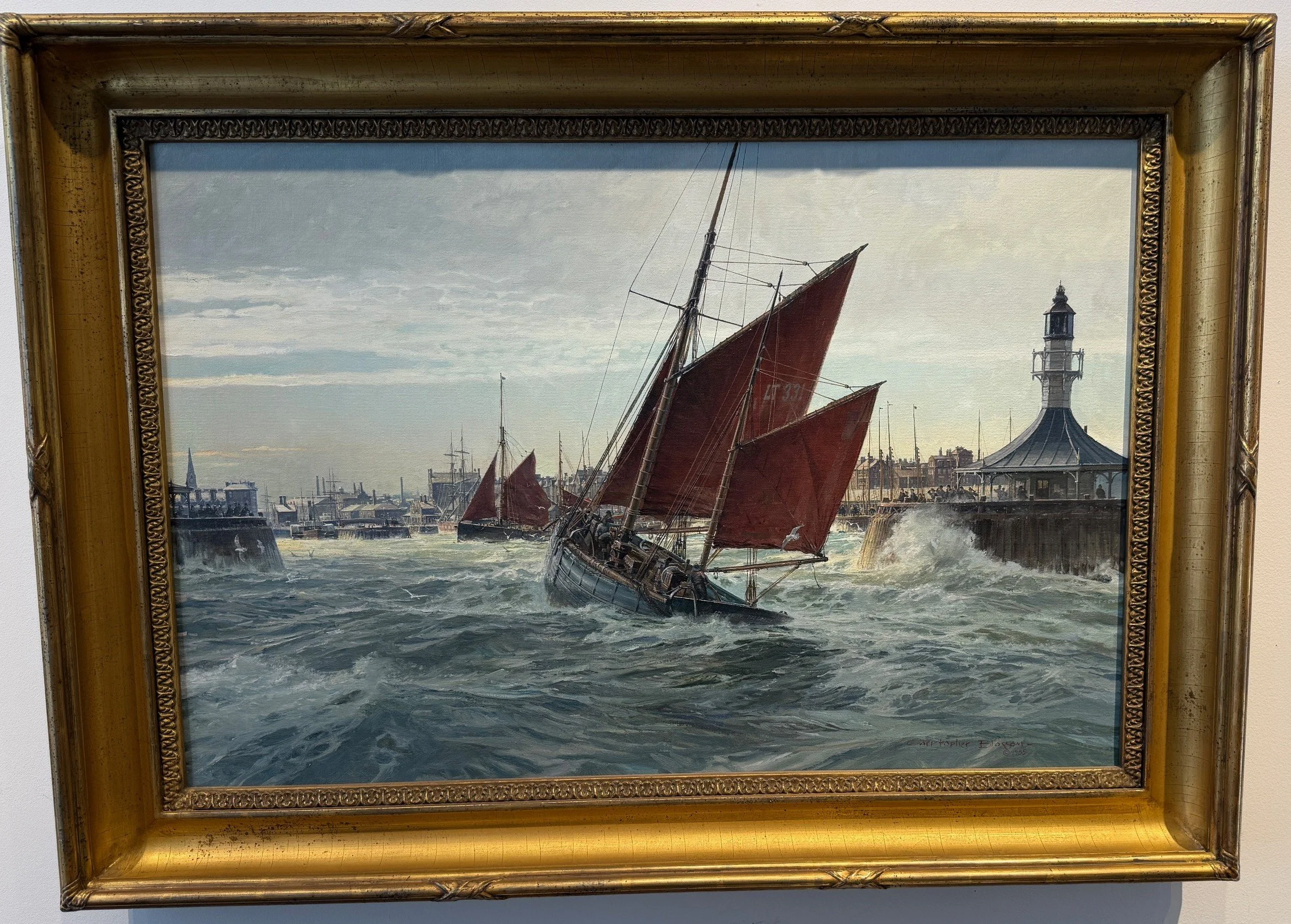 Christopher Blossom Threading the Break Walls at Lowestoft, England oil on canvas, 22” x 34” (framed dimensions: 26” x 38”)$35,000