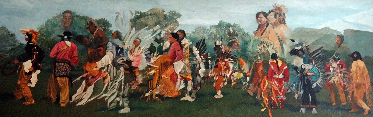Patricia Warfield Spirit of America: Connecticut/Rhode Island Inter-Tribal Pow-Wow Ceremony, c. 1990 oil, 19" x 60" $15,000 Painting Detail Painting Detail